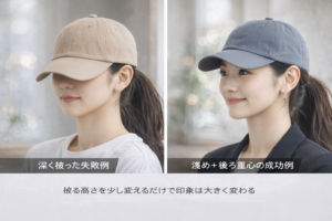 小顔に見えるキャップの正しい位置